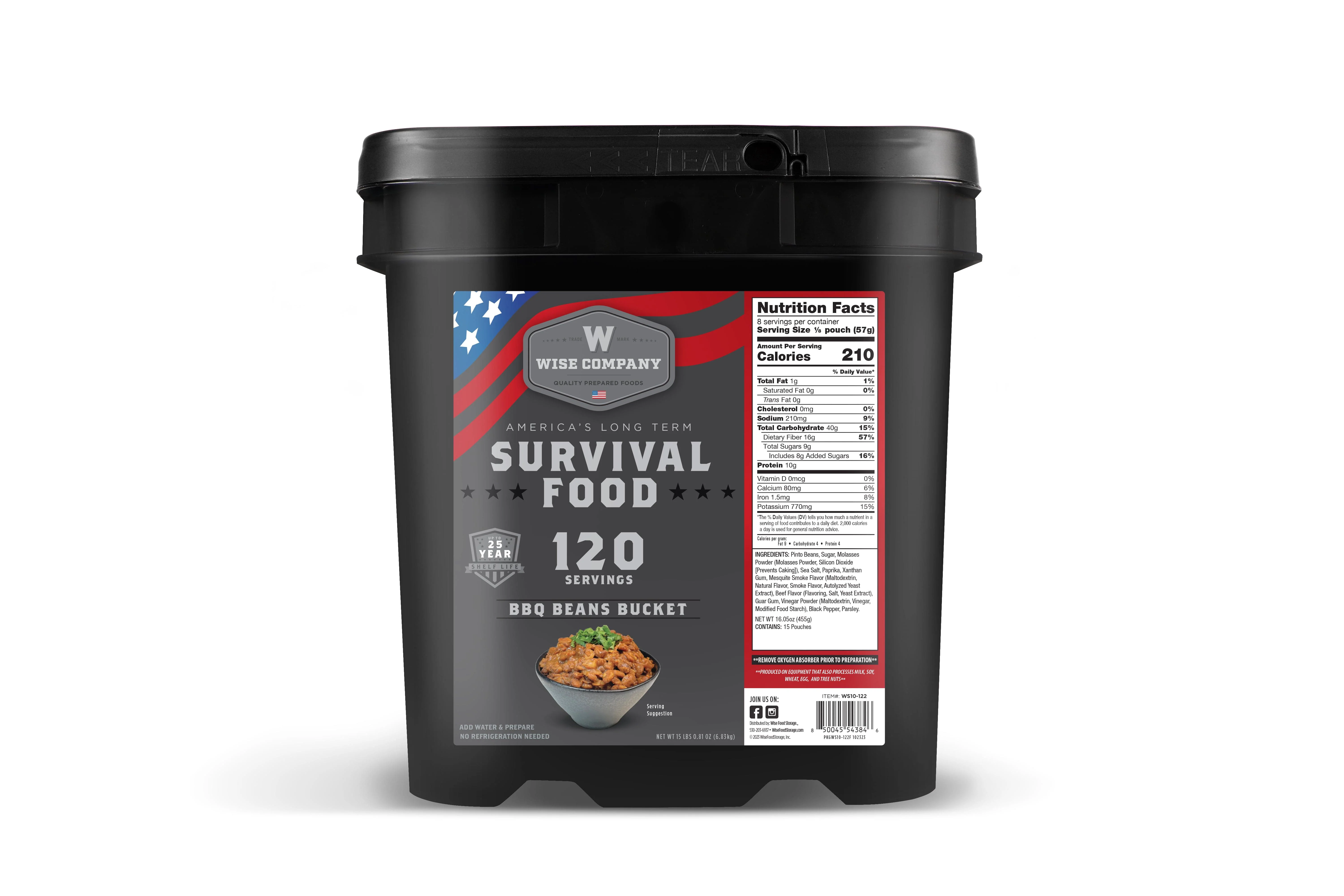 BBQ beans are a good source of protein and fiber and food that will help you feel full for longer. As such, they are a great addition to your survival food supply. These beans pack a whopping 10 grams of protein per serving and with 120 servings, this means this bucket has 1,200 grams of protein.